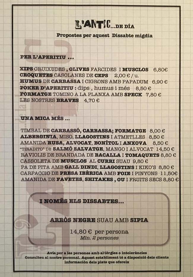 … hemos probado el “plat del dia” y la cena de platillos el viernes por la noche.